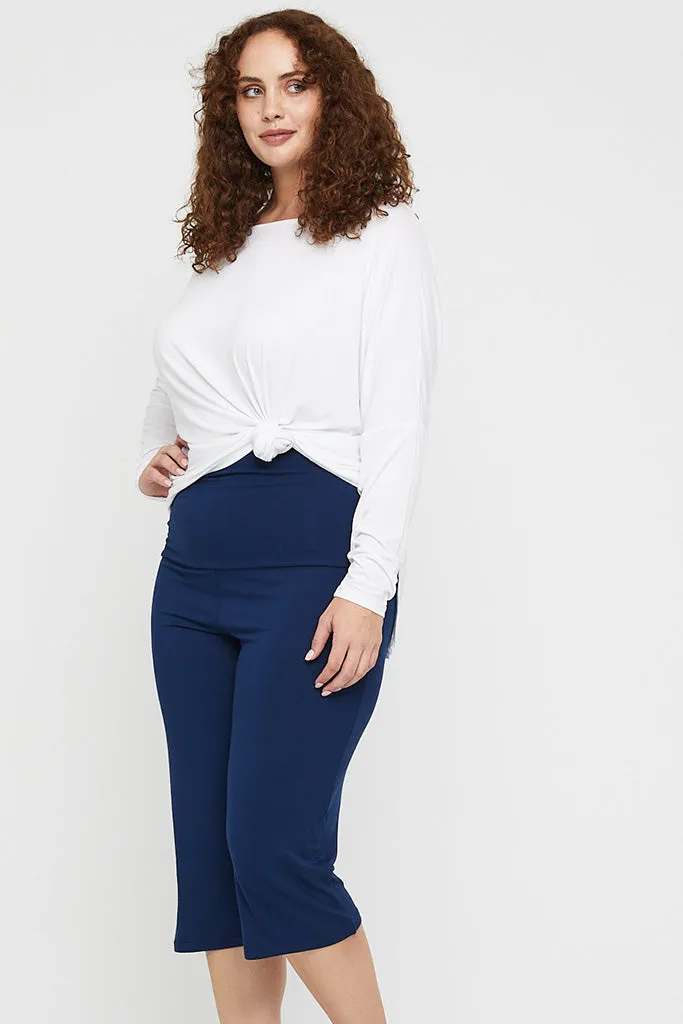 A similar design to our ever popular long length , the Crop Pants offer the same flattering style in a length that reaches just past the knee. Delivered in a fresh and versatile Navy shade, these Crop Pants offer a combination of comfort and style that can be worn to yoga or dressed up for a Sunday bbq!